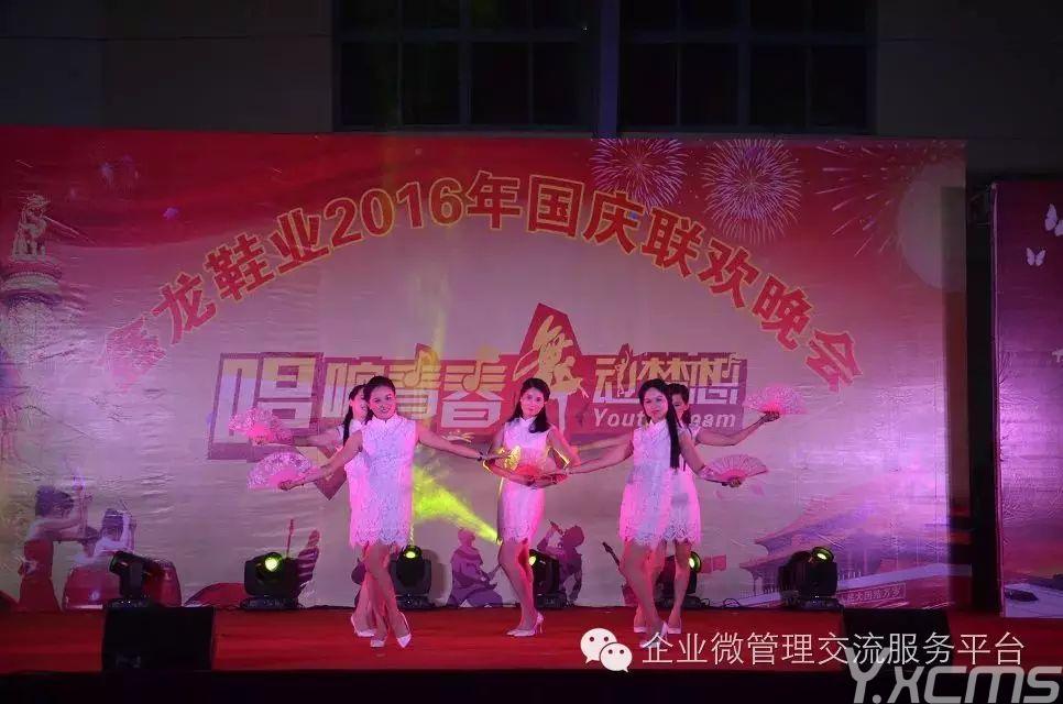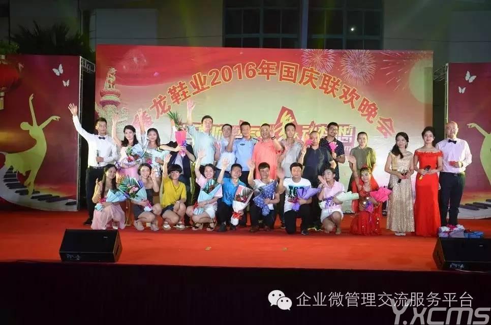 又是一年国庆日,日历也穿上了“国庆装”,9月30日晚7:00,鑫龙鞋业2016年“唱响青春,舞动梦想”国庆联欢晚会在公司篮球场举行,鑫龙鞋业2000余名员工欢聚一堂,载歌载舞,共同庆祝祖国67周年华诞。