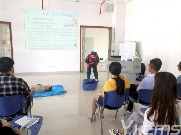 柯燕枝护士长与陈华萍护士当日在现场讲解了很多关于医护急救相关事项,通过通俗易懂的案例将理论知识传授给员工,让他们进一步了解心脏骤停、气道梗阻及意外伤害等突发事故的诱因、症状,以及紧急救护知识,诸如心肺复苏、海氏手法、创伤止血救护等。在培训过程中柯护士长与现场员工频繁互动,不断解答学员的各种疑难困惑。
